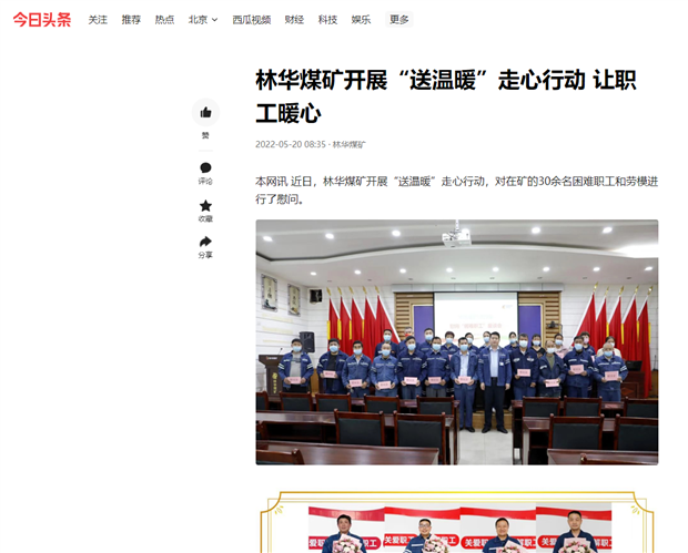 今日头条:林华煤矿开展“送温暖”走心行动 让职工暖心
