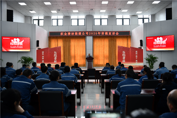 本网讯 11月12日,织金清洁能源公司“匠心筑梦 榜样领航”劳模先进宣讲活动在公司会议中心成功举行。来自黔西电厂杨兴杰、茶园电厂陈升连和胡建琼及织金清洁能源公司齐维祥4位劳模先进代表现场分享奋斗事迹,近百名职工代表参加活动。织金清洁能源公司党委委员、副总经理夏峰出席活动并致辞。