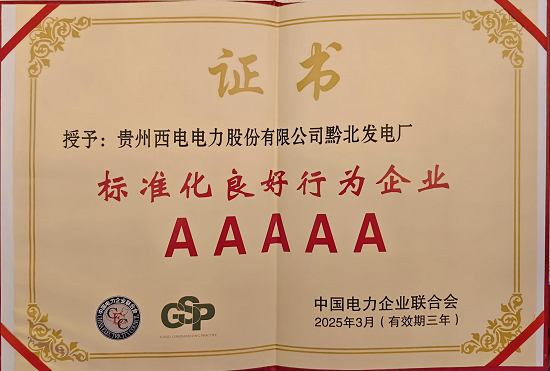 本网讯 近日,中国电力企业联合会在北京组织召开了2025年度电力标准化工作会议。在本次会议上,黔北电厂凭借其在标准化体系建设、实践与创新方面的卓越表现,作为火电企业唯一的一家代表,,参与了标准化良好行为AAAAA级企业现场颁奖,并作为行业标杆登台领奖。