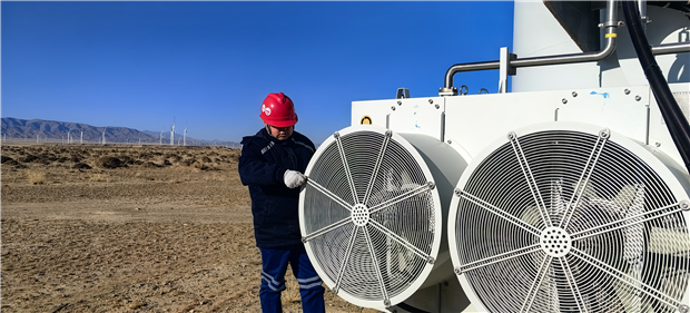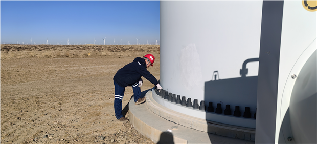 风机机箱变在戈壁的风沙下总是有灰尘从缝隙中往里钻,箱变清扫、检查、维护需要在狭小空间里查看,每次连转身都需格外小心。为了设备安全,我蜷身钻入仅容一人的检修缝隙,挨个检查母排链接件,庆幸亲自排查了近千颗螺栓,没有任何遗漏,才将松动的隐患全部清除,避免了其中一颗螺栓将近脱落造成的设备事故。同事万幸的对我说:“班长,还好你坚持查完了,不然这台箱变可要出问题了”,我想这才是一线岗位一个“党员”的坚持与坚守,我们工作中就要“务实”,实实在在的走好每一步,查好每一个隐患。