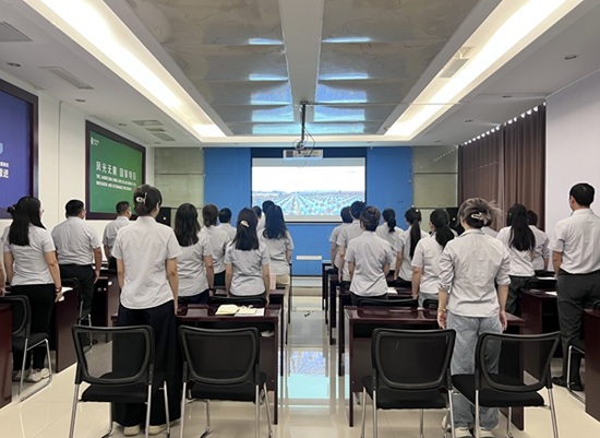 上午9时,安顺水电厂机关和各基层站点全体党员职工准时集中收看直播。大家全神贯注观看,认真聆听习近平总书记重要讲话,庄严隆重的场面令人心潮澎湃。当国歌声响起,全体人员自发起立跟唱,神情庄严肃穆,眼神中充满自豪与感动。