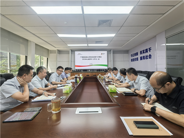 本网讯 9月2日,广西新能源公司党总支召开理论学习中心组2025年第6次学习(扩大)会,重点传达学习习近平总书记关于党的自我革命的重要思想、习近平总书记关于国有企业领导人员队伍建设的重要论述、习近平总书记关于党的建设的重要思想概论等。会议根据公司2025年上半年生产经营情况,开展了专题研讨,各部门找差距、补短板、定措施、保目标。