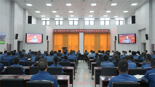 上午9:00,织金清洁能源公司行办楼一楼会议中心内气氛庄重,全体参会人员统一身着蓝色工作服集中观看纪念中国人民抗日战争暨世界反法西斯战争胜利80周年阅兵。阅兵仪式上,徒步方队的整齐步伐、现代化武器装备的依次亮相,尤其是无人机集群、新型战舰模型等国防重器的展示,引发全场阵阵掌声与惊叹。职工们目不转睛,深刻感受到国家实力的强大与民族精神的振奋。阅兵结束,顾剑以“以史为鉴,砥砺奋进,将抗战精神转化为奋进新征程的强大动力”为题讲授专题党课,他带领全体职工重温中国人民抗日战争暨世界反法西斯战争胜利80周年的光辉历程,深刻阐释“铭记历史、缅怀先烈、珍爱和平、开创未来”的核心要义。他指出,14年浴血奋战中,中国人民以3500万同胞伤亡的代价粉碎了日本侵略者的狂妄计划,淞沪会战、南京大屠杀等历史事件印证了“国家强大是抵御外敌的根本、民族团结是凝聚力量的基石”。他强调,抗战精神中的爱国主义情怀、斗争意志和团结精神,正是企业应对能源转型挑战、实现高质量发展的宝贵财富,全体职工需将其转化为攻坚克难的实际行动。