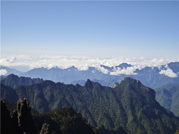 次日前往神农顶。海拔渐高,林木形态亦随之变化。冷杉直指苍穹,树皮上附生着绿苔,恍如披了绒衣。盘山公路如丝带缠绕在山间,每一个转弯都呈现新的画面。我在神农顶标志碑前停留许久,等待云雾稍散的间隙。终于,云开雾散,群峰毕现,我迅速按下快门,将这苍茫山色收入镜头。