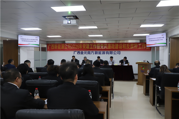 本网讯 2月6日,广西新能源公司召开2026年党建工作会暨党风廉政建设和反腐败工作会。会议深入学习贯彻习近平总书记关于党的建设的重要思想、关于党的自我革命的重要思想,认真落实习近平总书记对中央企业工作的重要指示精神,全面贯彻党的二十大和二十届历次全会精神,传达学习贵州金元党委书记、董事长朱仕祥同志在相关会议上的讲话精神,以及贵州金元陈可均书记所作的党建工作报告、闫祉宇书记所作的党风廉政建设和反腐败工作报告内容,全面总结公司2025年党建暨党风廉政建设和反腐败工作成效,系统部署2026年重点工作任务。公司领导班子及全体干部职工参加会议。