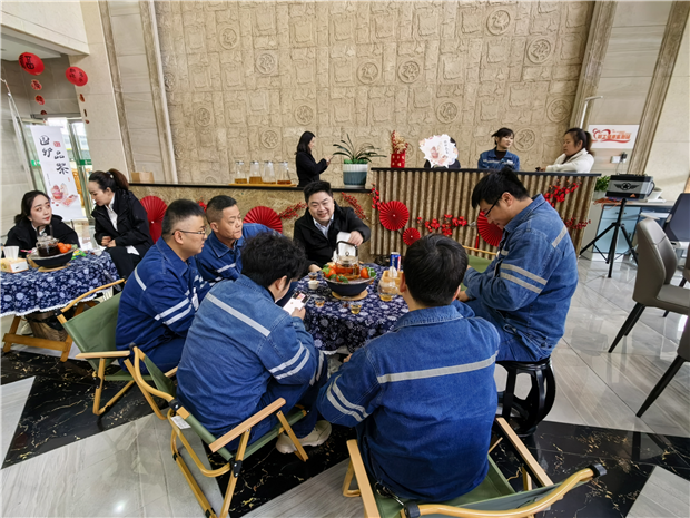 与此同时,在市集的各个摊位前,更是充满了生活的烟火气。围炉煮茶处,三五职工围坐,煮一壶清茶,烤几颗橘子;旁边的美食摊点前,热气腾腾的汤锅咕嘟作响,一口热汤下肚,暖意瞬间传遍全身。这种“逛吃”的独特体验,让职工们在公司也感受到了家一般的温暖和浓浓的年味。