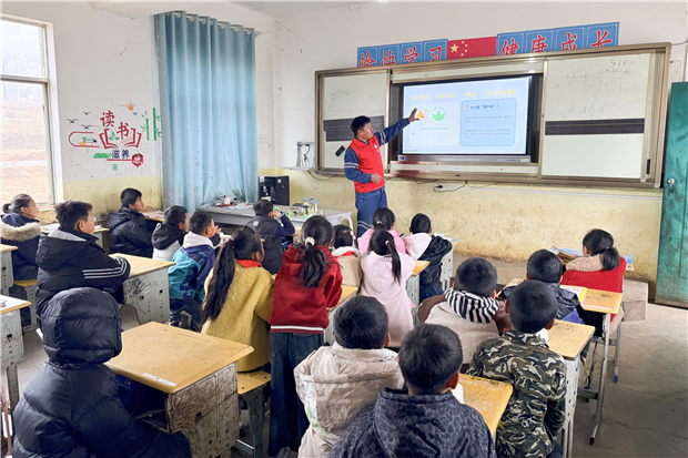 在威宁县么站镇联合小学,志愿者们为孩子们带来一堂生动的风力、光伏发电介绍及安全用电科普课,用浅显易懂的语言介绍“风怎样变成电”“太阳如何点亮灯泡”,通过展示光伏模型、互动交流,激发孩子们对绿色能源的探索兴趣,欢声笑语充满课堂。