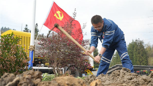 本网讯 近日,在“3·12”植树节来临之际,为深入践行绿色发展理念,强化党建带团建、团建促党建工作实效,擦亮公司青字品牌,织金平远公司党团联合举行“绿电赋能绿色发展,同心共植生态屏障”植树节主题活动。党团骨干、青年员工踊跃参与,以实际行动为企业生态建设添新绿。